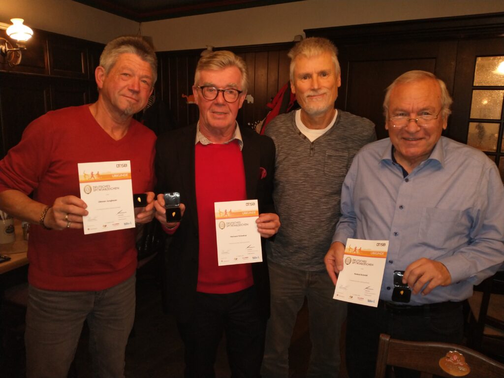 71 Sportler, eine Zunahme von acht Personen im Vergleich zu 2024, haben mit Erfolg das Deutsche Sportabzeichen in Gold, Silber und Bronze abgelegt. Es war erfreulich, dass sich 18 (!) Sportler zum ersten Mal einer Sportabzeichenprüfung gestellt haben und die Anforderungen der einzelnen Disziplinen genommen haben. Seit 58 Jahren konnte dabei Heinrich Weide das Sportabzeichen erfolgreich ablegen, der damit die Rangliste der Neuburger anführt. Mehr als 50 erfolgreiche Prüfungen gelangen auch Günter Held und mehr als 40 Abzeichen schafften Jürgen Krause, Heinz Richter und Ewald Öxler. Mit der Ehrenabzeichen des Deutschen Olympischen Sportbund (DOSB) wurden für das 25 und 35fache Ablegen des Sportabzeichens Roland Schmidt, Othmar Jungbauer und Hermann Schottnar bedacht.