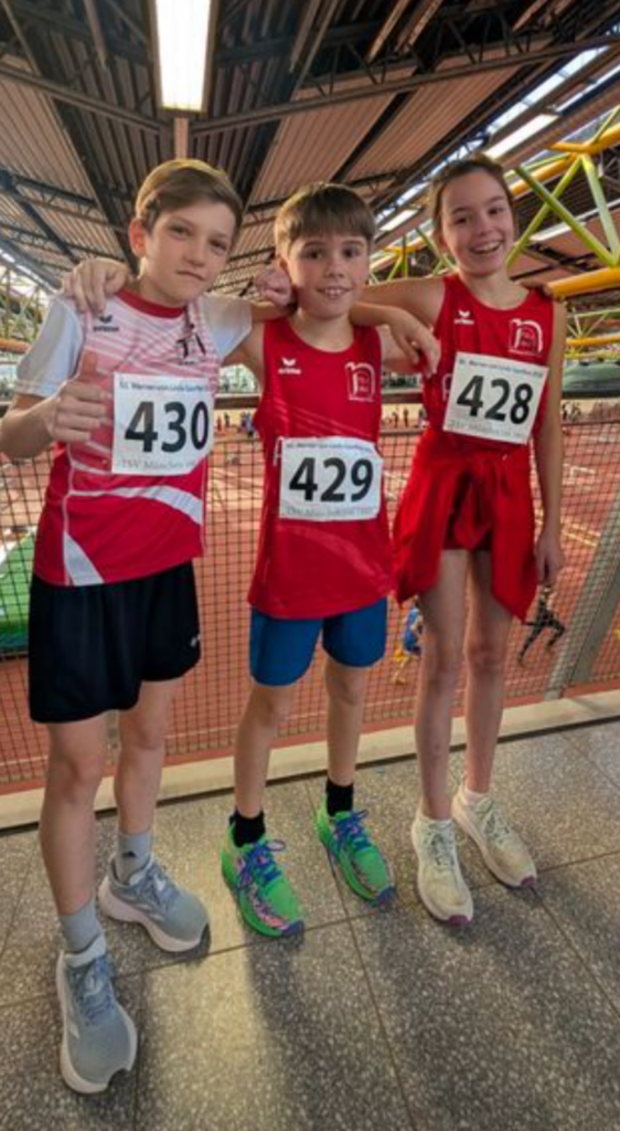 Auf dem Stockerl platzierte Jonas Meyer (M10) im 600-Meter-Lauf als Zweiter mit 1.57,48 Minuten. Um lediglich 15 Hundertstel Sekunden verpasste Jonas den Sieg. Beim Sprint über 50 Meter landete er in 8.51 Sekunden auf Platz 17. In der gleichen Disziplin mit 68 Konkurrenten lief Din Nuhanovic (M11) mit 7,62 Sekunden auf Rang drei. Beim 600-Meter-Lauf platzierte sich Din in 2.00,37 Minuten auf Platz sechs. Bei den Jugendlichen W13 lief Hannah Knospe beim 800-Meter-Lauf in 2.53,64 Minuten auf Rang acht. Mit den erzielten Ergebnissen waren die Kinder stolz auf ihren Einstieg in die Saison 2026 und bekamen ein Feedback auf ihren Trainingsstand.