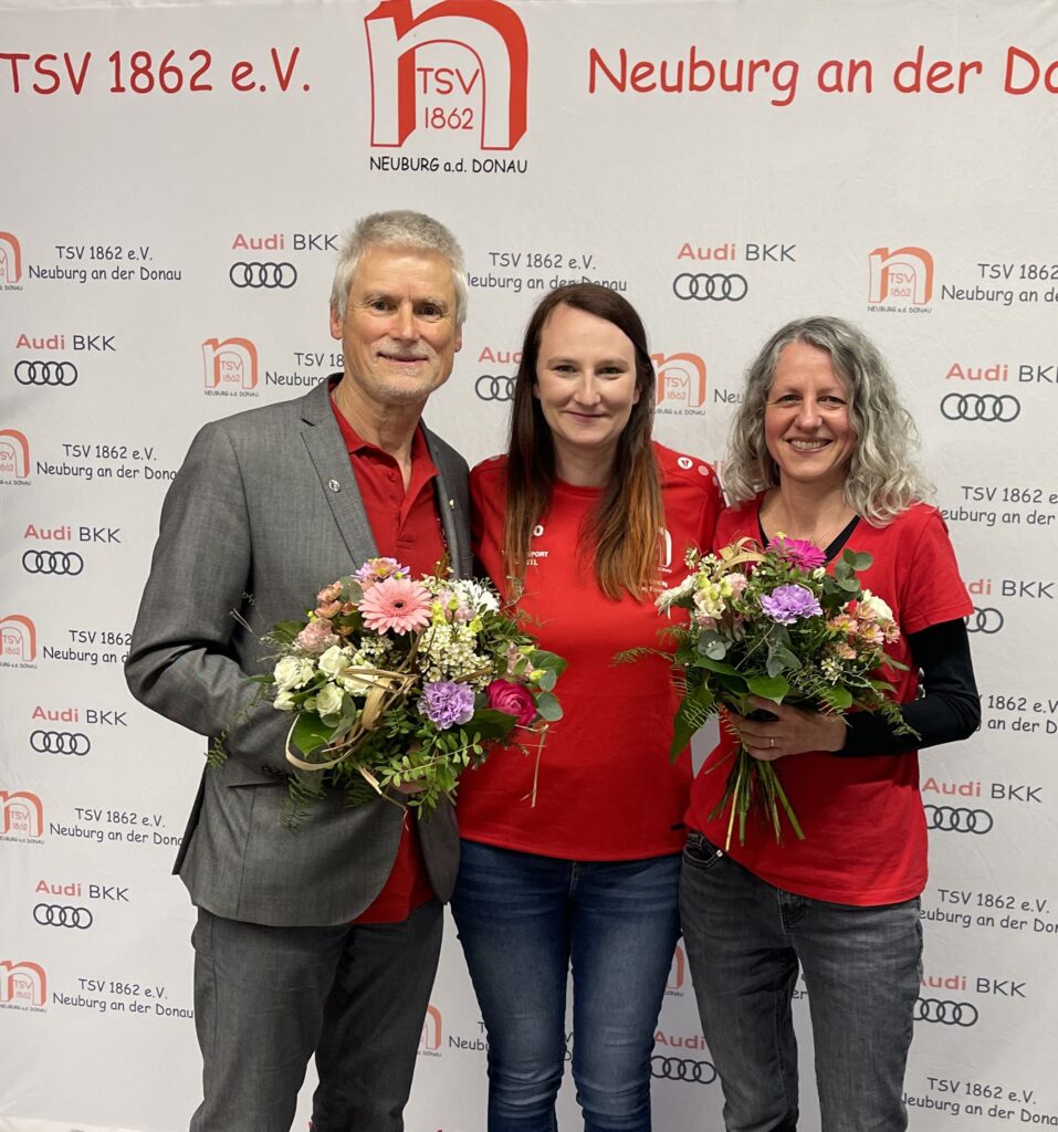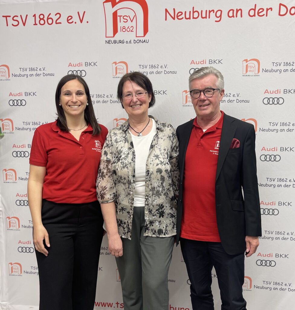 Und auf dem rechten Bild der neue Gesamt-Vorstand des TSV 1862 Neuburg e.V.. Namentlich von Links: Sonja Bauer (2. Vorstand); Cornelia Euringer-Klose (1. Vorstand), Hermann Schottnar (3. Vorstand)