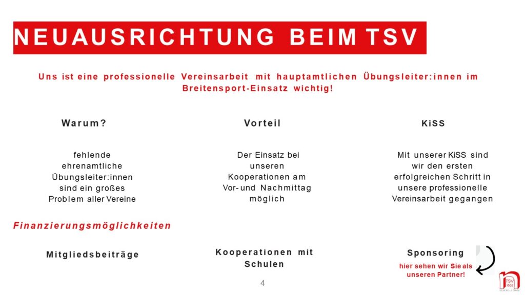 Es gibt viele Möglichkeiten für ein Sponsoring oder eine Kooperation im TSV 1862 Neuburg e.V. Sprechen Sie uns an – gemeinsam gestalten wir eine attraktive und nachhaltige Präsenz für Ihr Unternehmen.